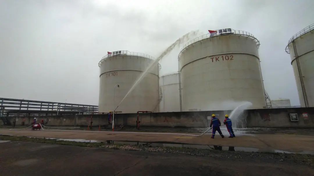 火情失控后,應(yīng)急搶險組用移動泡沫裝置滅火,并開啟噴淋對儲罐降溫,同時使用水炮對儲罐加強(qiáng)降溫。在各小組的有序配合下,本次演練圓滿結(jié)束。