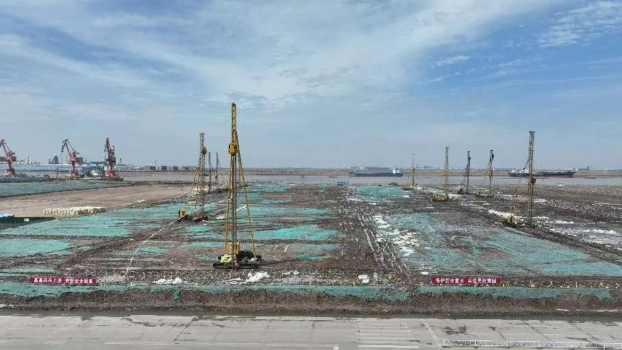不負春光,奮戰開局丨響水港區小蟒牛碼頭1#-3#泊位C區排水板打設全部完工