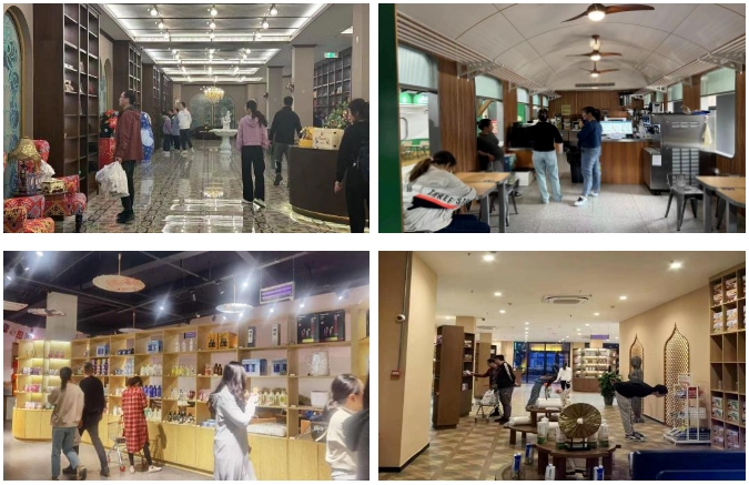 園區內多元業態有機融合,購物、文化展示、休閑娛樂等服務一應俱全,滿足了不同游客的個性化需求。特別是以國內外特色為主題的展銷館,如俄羅斯館、大洋洲館、歐洲館等,讓游客領略各地文化精粹,輕松實現全球購。同時,港泊面館、港泊雅苑、港泊韓膳閣、港泊中歐班列體驗館和港泊韓式風味體驗店等特色餐飲也為游客提供了地道美食,備受游客青睞。