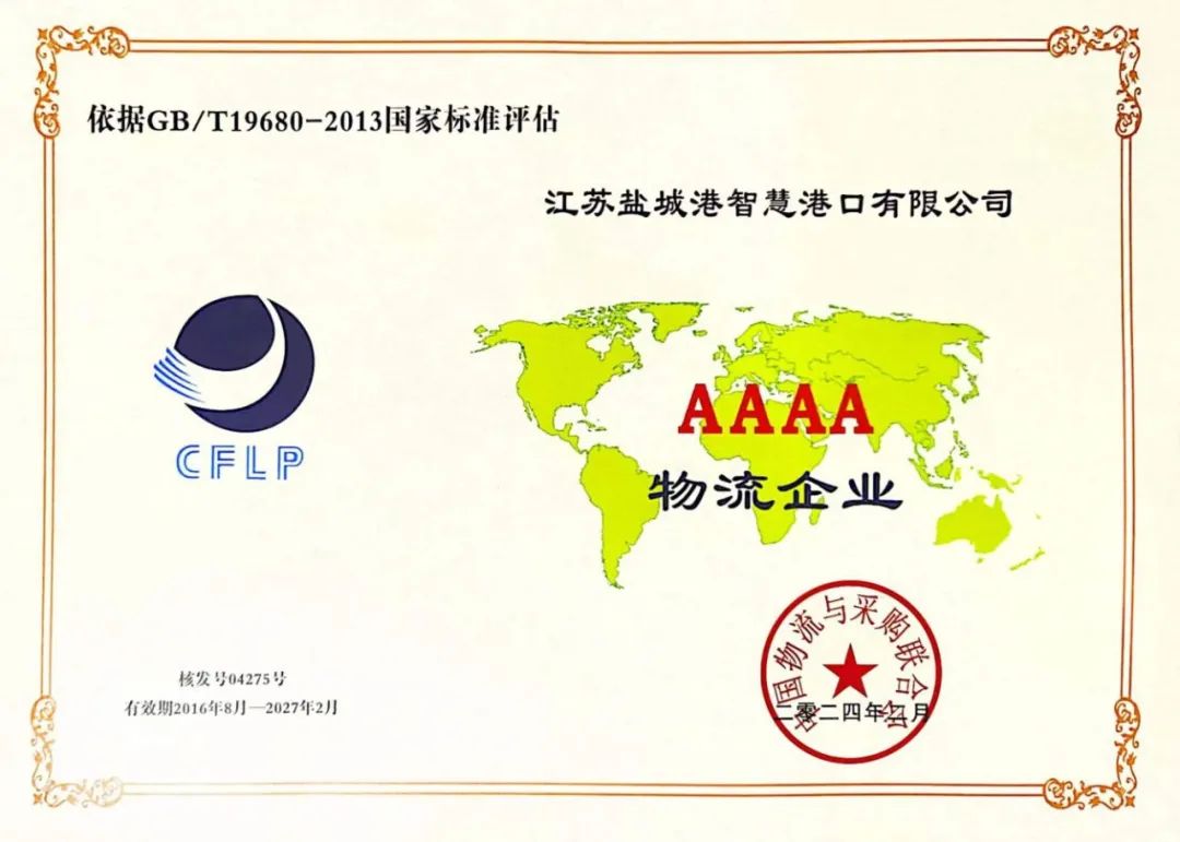 近日,由中國物流與采購聯(lián)合會(huì)主辦的“第七屆中國(合肥)物流與供應(yīng)鏈金融創(chuàng)新發(fā)展大會(huì)暨37屆物流企業(yè)授牌大會(huì)”在安徽合肥盛大召開,鹽城港智慧港口公司憑借出色的物流服務(wù)質(zhì)量和規(guī)范化的運(yùn)營水平,被評(píng)為“AAAA級(jí)物流企業(yè)”,不僅標(biāo)志著智慧港口公司在規(guī)范化、標(biāo)準(zhǔn)化運(yùn)營方面已達(dá)到國家標(biāo)準(zhǔn),物流服務(wù)模式得到了行業(yè)的高度認(rèn)可,也為公司進(jìn)一步發(fā)展和提升品牌影響力奠定了堅(jiān)實(shí)的基礎(chǔ)。