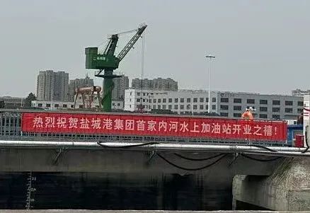2024年6月16日上午,隨著一聲船笛響起,全市首家內河港水上加油站—建湖港水上服務區加油站宣布開業運營,陸港集團相關負責人等參加了開業儀式并在通過風險提示、靜電消除后進行了現場加油操作觀摩,此次首單業務為蘇鹽城貨092668等船舶提供了近500升柴油。