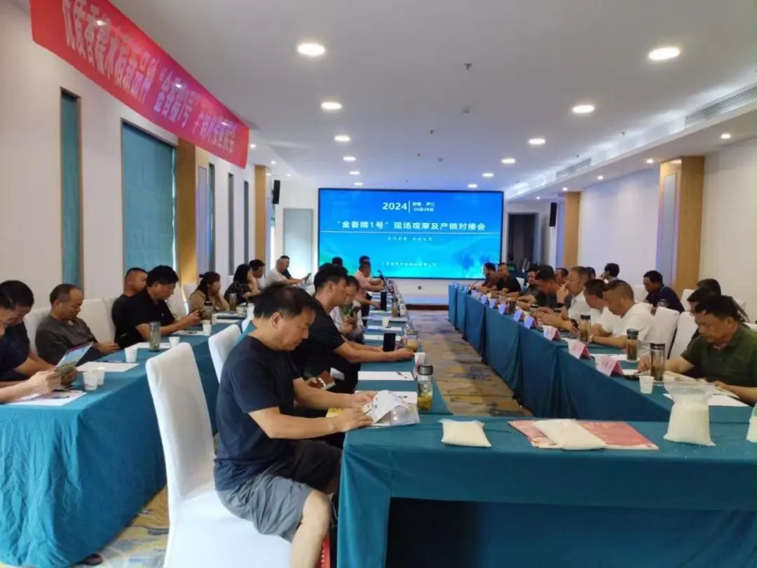 近日,農業科技集團在安徽省廬江縣召開水稻品種“金香糯1號”現場觀摩暨產銷對接會。來自江蘇和安徽的種子經銷商、種植大戶、稻米加工企業負責人以及糧食經銷商齊聚一堂,共同探討“金香糯1號”訂單種植產銷對接合作事宜。