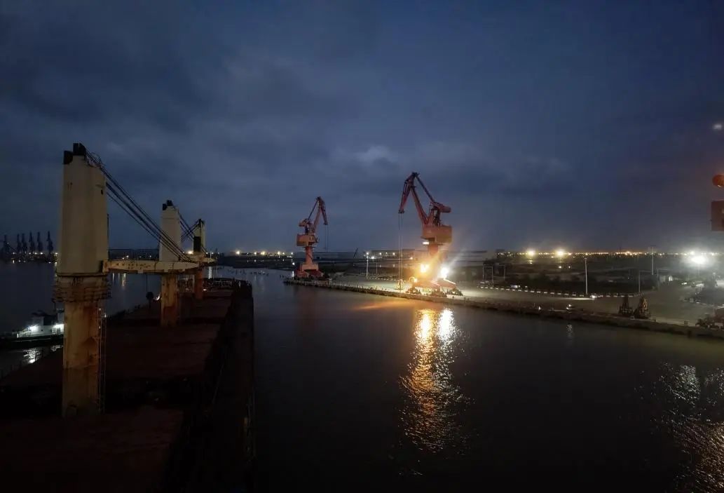 在引航過程中,引航員們全神貫注,時刻保持著高度警惕和專注。他們緊密監控船舶的動態和周圍環境的變化,通過精準的操控和果斷的決策,成功克服了狹窄航道中的交叉會船等一系列艱難險阻,經過緊張有序的努力,最終在夜幕降臨之際,將“林海2”輪安全引領靠泊至德龍碼頭。