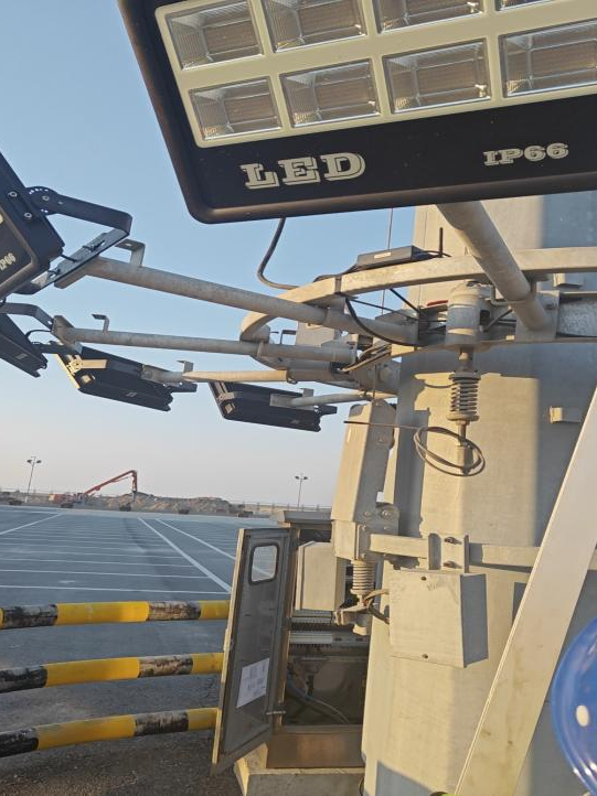 濱海港區通用碼頭所使用的照明為1000W的高壓鈉燈,由于高壓鈉燈耗電量大,照明度不足,為提倡節能減排打造綠色港口,現對1-2#碼頭堆場高桿燈改造成智能遠程集中控制400W的LED節能光源,以滿足生產需要。