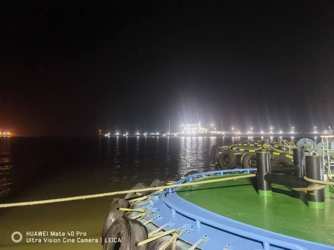 面對(duì)“晨昏蒙影”特殊時(shí)段(黎明前光線昏暗期),引航員提前1小時(shí)登輪,與船長(zhǎng)反復(fù)核對(duì)潮汐、流速和船舶操縱特性。在朝陽(yáng)初升的關(guān)鍵窗口期,引航員通過精準(zhǔn)操控,在大馬力拖輪協(xié)同配合下,克服船舶慣性、風(fēng)流壓差等技術(shù)難點(diǎn)完成精準(zhǔn)靠泊。