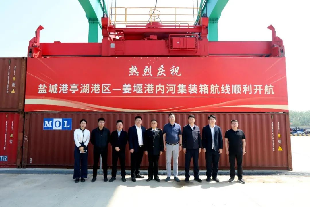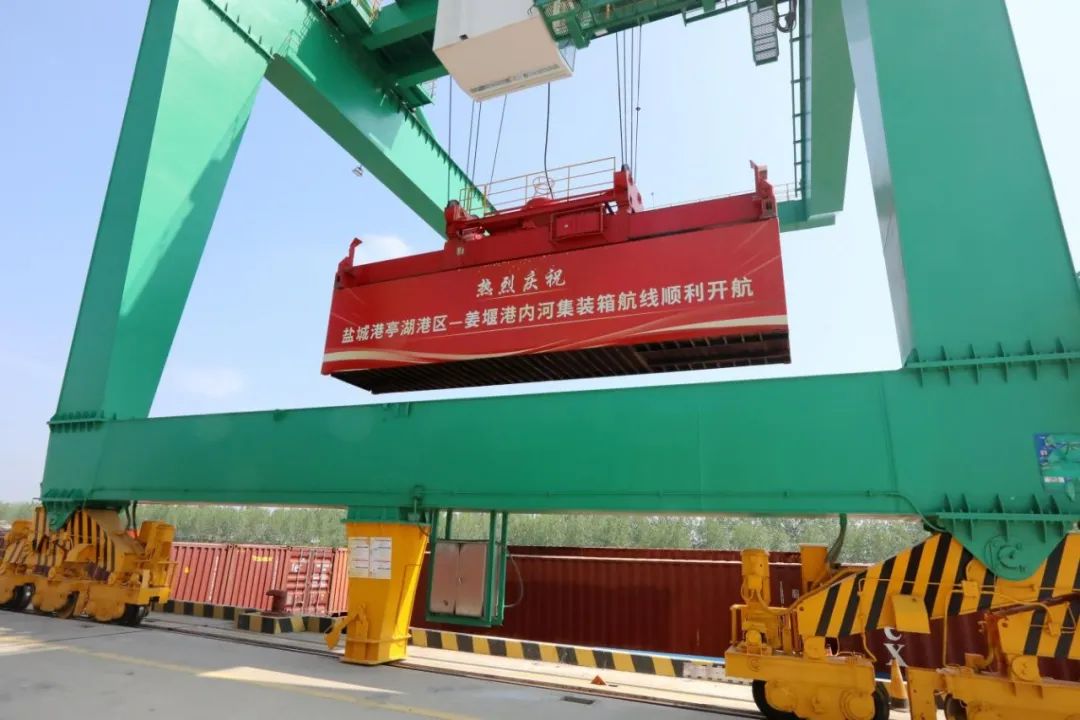 亭湖港區—姜堰港,內河集裝箱航線正式開航