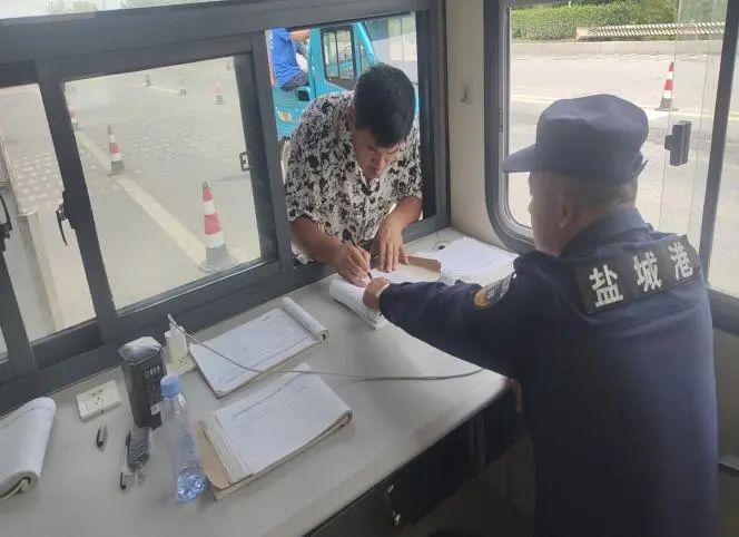 “你好,請(qǐng)將車停一下,登記進(jìn)港。”門崗保安員身子挺拔,手持醒目的紅色停車示意牌,維持港區(qū)入口處的進(jìn)出安全。他們目光堅(jiān)定,迅速核對(duì)駕駛員出示的證件與進(jìn)港通行證,指尖在登記簿上飛速記錄車牌、姓名、事由等信息,同時(shí)與職能部門實(shí)時(shí)核驗(yàn)身份。他們說,只要穿著保安服,我們就必須用嚴(yán)謹(jǐn)細(xì)致的工作狀態(tài),守牢港口的第一道安全防線。