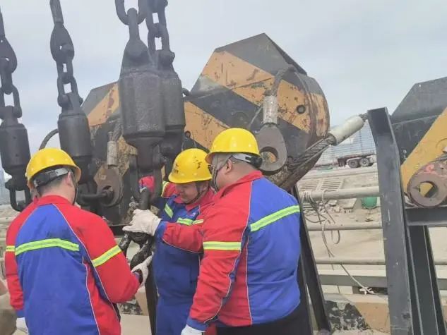 安全,是港口生產永遠不可逾越的紅線,設備安全更是重中之重。生產保障組24小時堅守崗位,時刻守護著港口設備的安全運行。他們依據門機使用頻率、作業環境及磨損數據等詳細信息,“量體裁衣”地為每一臺設備制定保養方案。為關鍵部位充分潤滑,確?!颁撹F巨人”能夠運轉流暢;鋼絲繩等重點部件接受“點檢員”細致入微的檢查,不放過一絲隱患裂痕,為安全生產筑起堅實的“防護墻”。