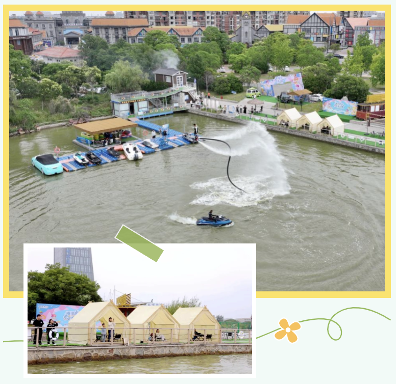 此次“港泊狂歡?去浪一夏”夏日盛宴不僅在游客接待量上表現(xiàn)出色,在推動(dòng)文旅集團(tuán)“五朵金花”產(chǎn)業(yè)發(fā)展方面也成效顯著。除了水上運(yùn)動(dòng)項(xiàng)目,鹽城港文旅集團(tuán)還注重配套服務(wù)的完善,全力滿(mǎn)足游客游、購(gòu)、娛、商及吃、喝、玩、樂(lè)的多樣化需求。日月湖畔錯(cuò)落有致的帳篷營(yíng)地,燒烤區(qū)飄散的煙火氣與日月湖相映成趣,為游客提供了親近自然的休憩空間;莎士比亞國(guó)際商貿(mào)小鎮(zhèn)充滿(mǎn)異域風(fēng)情,游客在此選購(gòu)全球好物。這些豐富的配套設(shè)施,使得日月湖不僅是水上運(yùn)動(dòng)的樂(lè)園,更是綜合性的休閑度假勝地,進(jìn)一步提升了對(duì)周邊游客的吸引力,無(wú)論是家庭出游還是團(tuán)隊(duì)團(tuán)建,都能在這里找到屬于自己的樂(lè)趣。