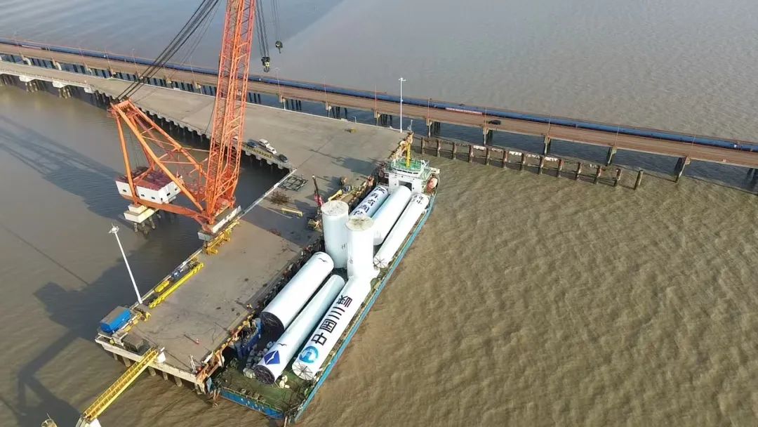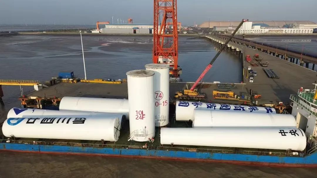 近日,隨著最后一件長31.6米、直徑6.6米、重146.3噸的風電塔筒穩(wěn)穩(wěn)落在“云舟之星”輪甲板上,標志著智慧港口公司散貨碼頭分公司創(chuàng)新的雙套風電塔筒裝船工藝成功應(yīng)用實踐。