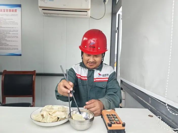 活動(dòng)中,港區(qū)還特意為堅(jiān)守在作業(yè)一線的員工留了一份熱騰騰的餃子,由專人送到崗位上,讓他們在忙碌間隙也能嘗到這份集體的心意。