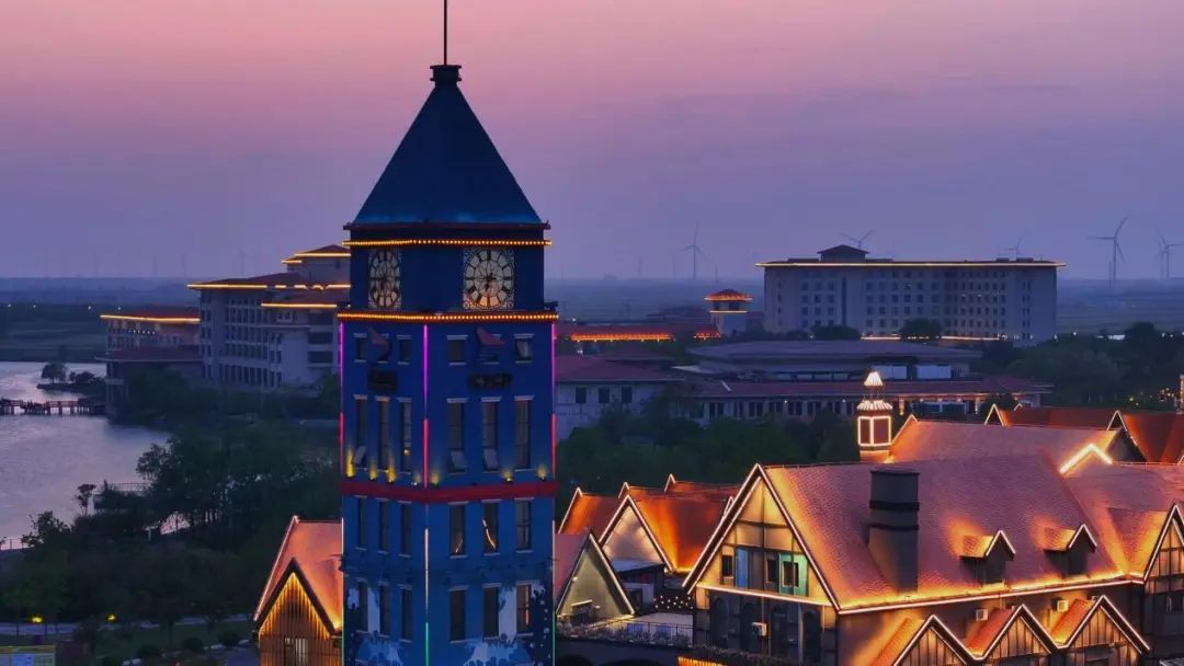 此刻的鹽城港,是多重時空的折疊——碼頭上,晚班工人與夜航貨輪完成交接,起重機懸臂劃過天際線的弧線,像一支以天空為譜表的銀色指揮棒;文旅業態中,港泊餐廳里正熱鬧非凡,食客們舉杯暢飲時,杯沿映照著遠處集裝箱船那如移動燈火城堡般的璀璨光芒。