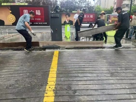 隨著防汛警報(bào)響起,物業(yè)應(yīng)急小組迅速集結(jié),攜帶防汛沙袋、防洪插板、抽水泵等物資設(shè)備趕赴西大門(mén)。各小組按照預(yù)案分工展開(kāi)作業(yè):搶險(xiǎn)救援組兵分兩路,第一分隊(duì)使用專(zhuān)業(yè)工具快速搬運(yùn)并組裝鋁合金防洪插板,在車(chē)庫(kù)入口處構(gòu)筑起臨時(shí)擋水墻;第二分隊(duì)緊隨其后,用沙袋在插板后方疊筑“品”字形防洪墻,每層沙袋間用防水布加固,確保無(wú)滲漏縫隙。設(shè)備保障組同步啟動(dòng)移動(dòng)式抽水泵,對(duì)積水區(qū)域?qū)嵤?qiáng)排作業(yè),同時(shí)安排技術(shù)人員對(duì)故障排水系統(tǒng)進(jìn)行緊急搶修。全程通過(guò)智能廣播系統(tǒng)循環(huán)播放疏散提示,引導(dǎo)周邊居民有序撤離至臨時(shí)安置點(diǎn)。