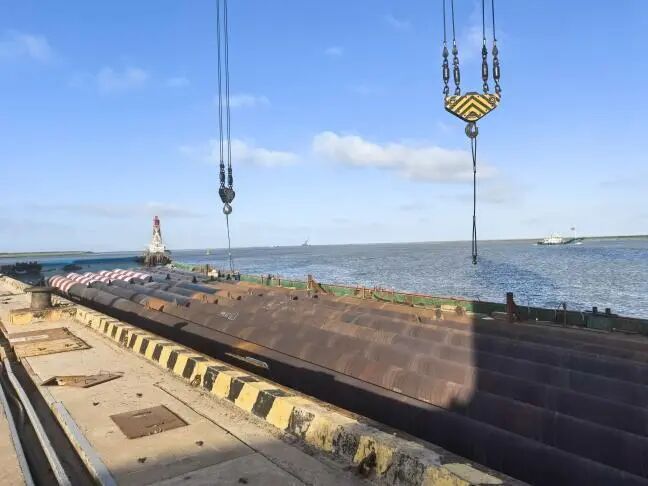 面對密集到港船舶和緊張船期,港區(qū)科學統(tǒng)籌作業(yè)資源,優(yōu)化物流組織,通過整合路線、強化聯(lián)運、推廣直取直裝等方式,打通銜接堵點,實現(xiàn)“車船直裝、貨不落地”的高效轉(zhuǎn)運模式。近日,光伏管樁項目第8船作業(yè)圓滿完成,展示了港區(qū)高效協(xié)同、精準作業(yè)的硬核實力,為后續(xù)新業(yè)務開展樹立了標桿。