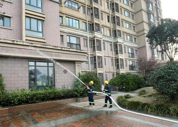 鹽港物業公司則聯合集團內部跨境電商、保安公司等兄弟單位,開展多場景聯合演練。在莎士比亞跨境電商產業園,模擬工作人員觸電場景,應急搶險小組迅速切斷電源、設置警戒區,醫療救護組同步開展心肺復蘇,在8分鐘內完成險情處置與人員救援;在危化品運輸車輛專用停放區,針對車輛故障引發的危險品起火,消防隊啟用干粉滅火器、消防水炮等器材,15分鐘內撲滅“火情”并控制泄漏風險;在星湖花園小區,模擬居民樓電器短路起火,物業應急團隊按“先控制、后消滅”原則滅火,疏散引導組逐戶引導居民有序撤離,全程分工明確、響應迅速。港灣開發建設集團以典型案例為指引,組織作業現場消防滅火應急演練,演練過程指令清晰、協作有序,有效提升了施工人員應急處置能力。