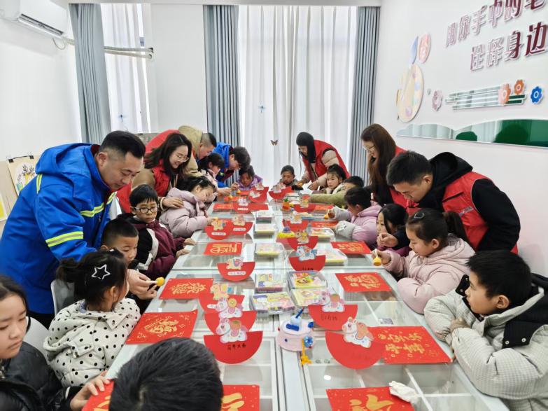 活動(dòng)當(dāng)日下午,在陳家港鎮(zhèn)未成年人保護(hù)工作站的圖書室里,20名留守兒童在志愿者的陪伴下認(rèn)真閱讀課外書籍,沉浸在書香之中。隨后的游戲環(huán)節(jié)里,志愿者們與孩子們玩起擊鼓傳玩具的游戲,音樂聲時(shí)而急促、時(shí)而舒緩,每當(dāng)鼓聲停下,拿到玩具的孩子便大方地說出一個(gè)帶“馬”字的四字詞語,現(xiàn)場歡聲笑語不斷。在手工制作室,孩子們在志愿者的耐心指導(dǎo)下,動(dòng)手粘貼馬年玩具,并親手拓印出金光閃閃的“福”字,感受傳統(tǒng)文化的魅力。活動(dòng)最后,響水港區(qū)志愿者們?yōu)楹⒆觽儼l(fā)放了新年禮品和壓歲紅包,送上滿滿的新春祝福。
