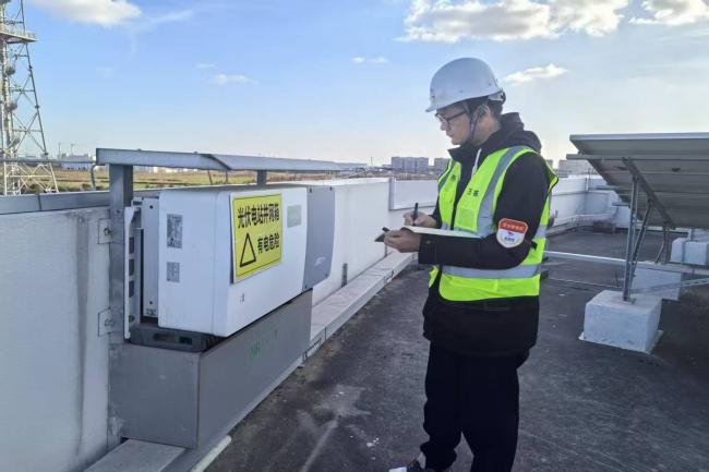 天色微明,運維組的成員們已整裝出發。頭戴安全帽,手持巡檢記錄本,借助接地搖表、紅外測溫儀等儀器在清晨的海風中細致排查光伏陣列的每一臺設備、每一處接線盒、每一根電纜。他們穿梭于成片的光伏板間,目光如炬,不放過任何一處細微的異常、任何一絲潛在的問題,并結合巡視檢查中發現的安全隱患第一時間進行消缺,確保設備可靠運行。每一次俯身檢查、每一組數據記錄,都關乎著港區綠色電力的穩定輸出,關乎著新能源系統安全運行的底線。