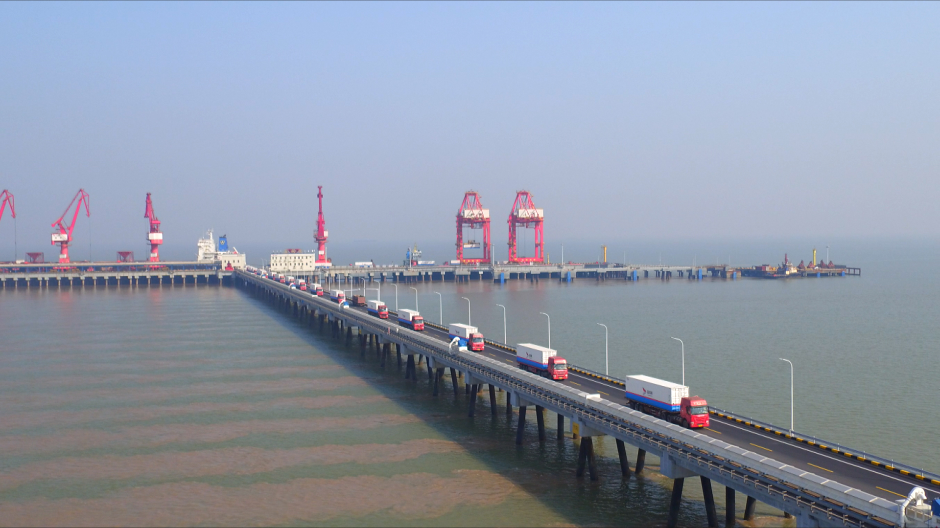 11月18日上午,“秋韻”輪搭載著100個(gè)鹽城港自備箱大柜緩緩靠泊鹽城港集裝箱碼頭,鹽城港集裝箱物流車(chē)輛整齊列隊(duì),共同歡迎“新成員”的加入。