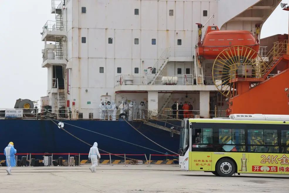 為確保中國(guó)船員換班工作“零等待”“零延時(shí)”,濱海港區(qū)第一時(shí)間啟動(dòng)船員換班閉環(huán)管控工作流程和應(yīng)急處置流程,與濱海縣聯(lián)防聯(lián)控機(jī)制各成員單位協(xié)同配合,確保換班中國(guó)船員自國(guó)門至家門的全程閉環(huán)管理。讓船員感受到回到家的溫暖。