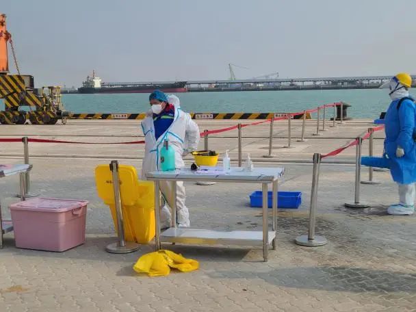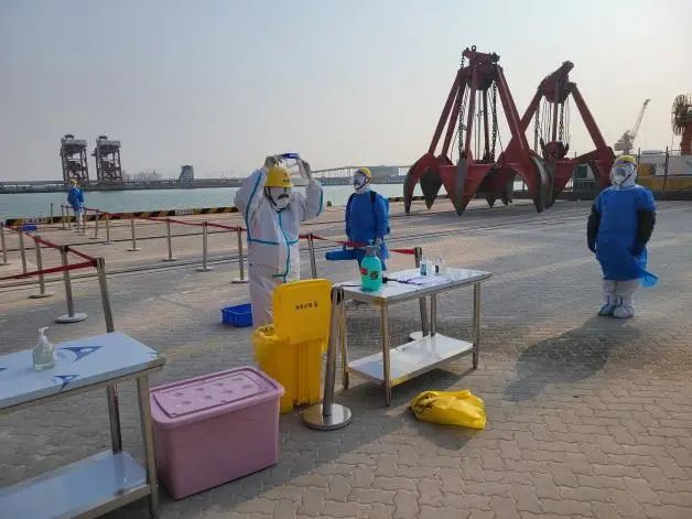 本次演練從實(shí)戰(zhàn)出發(fā),結(jié)合港口實(shí)際,檢驗(yàn)港口一線防疫工作人員對(duì)核酸檢測(cè)呈陽(yáng)性人員的發(fā)現(xiàn)、隔離、疫情報(bào)告、轉(zhuǎn)運(yùn)、個(gè)人防護(hù)及消殺等能力。