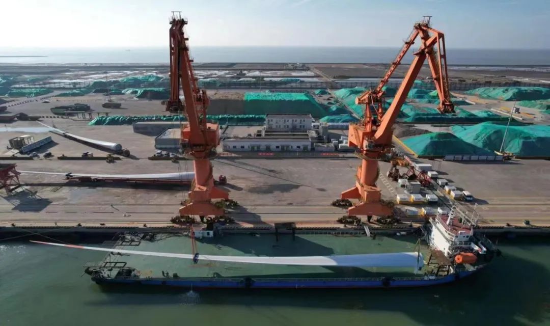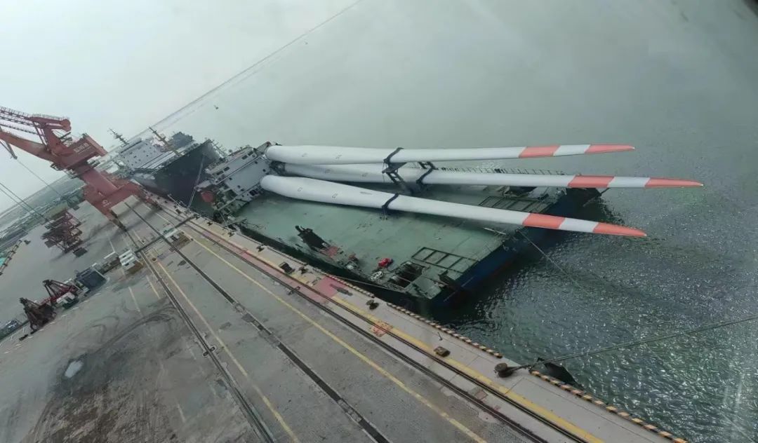 國(guó)電投山東海陽(yáng)項(xiàng)目首套風(fēng)電設(shè)備系濱海港建港以來(lái)進(jìn)港海運(yùn)最大的風(fēng)力葉片,全長(zhǎng)97米。此次運(yùn)載的風(fēng)力葉片從南通運(yùn)至濱海港區(qū)碼頭,由于該葉片體身長(zhǎng),運(yùn)輸過(guò)程中涉及安全系數(shù)較大,為確保萬(wàn)無(wú)一失,從327省道轉(zhuǎn)入濱海港區(qū)后,生產(chǎn)經(jīng)營(yíng)條線安排專(zhuān)班人員實(shí)時(shí)跟蹤服務(wù),及時(shí)協(xié)調(diào)清理影響拐彎的部分隔離護(hù)欄,保障途中各轉(zhuǎn)彎要道口的通行安全,順利抵達(dá)目的地——濱海港碼頭1號(hào)泊位。至此,三根風(fēng)葉片全部被安全高效地裝載上貨輪,運(yùn)往國(guó)電投山東海陽(yáng)目的地。