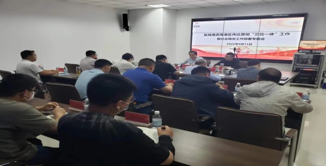 為貫徹“疫情要防住、經濟要穩住、發展要安全”重大要求,筑牢“三位一體”常態化根基,濱海港區深入貫徹落實鹽城港集團“三位一體”視頻調度會暨穩定工作部署會議要求,持續增強做好黨的二十大期間安全穩定工作的緊迫感和責任感,著力在措施落實上下硬功夫,確保安全穩定工作萬無一失。