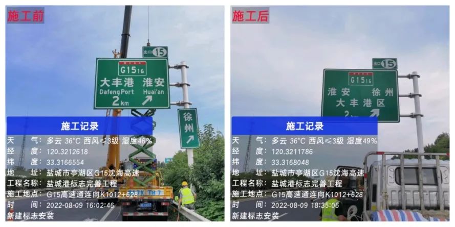 近日,鹽城港通往各港區(qū)高速道路標(biāo)識指引牌工程G15沈海高速路段的道路指示牌已完成部分更換工作。