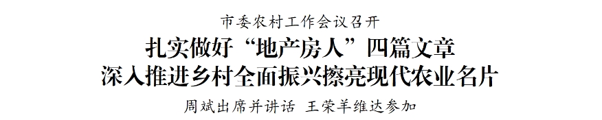 周斌指出,去年全市上下堅持把“三農(nóng)”工作擺在全局工作的重中之重,穩(wěn)產(chǎn)保供彰顯擔(dān)當(dāng),產(chǎn)業(yè)發(fā)展加快起勢,強村富民闖出新路,農(nóng)業(yè)農(nóng)村現(xiàn)代化邁出堅實步伐。當(dāng)前,高水平建設(shè)農(nóng)業(yè)強市已經(jīng)從起筆謀劃進入到加快實施的階段,“三農(nóng)”工作肩負的使命更加重大,必須切實增強做好“三農(nóng)”工作責(zé)任感使命感,準確把握“三農(nóng)”工作定位、現(xiàn)階段主要任務(wù)、鄉(xiāng)村振興實現(xiàn)路徑,堅定信心、乘勢而上,不斷提升鄉(xiāng)村產(chǎn)業(yè)發(fā)展、鄉(xiāng)村建設(shè)和鄉(xiāng)村治理水平,加快建設(shè)宜居宜業(yè)和美鄉(xiāng)村。