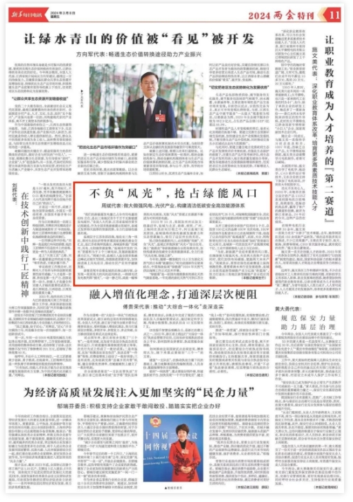 “我們的新能源發電量已占全市用電量的60%左右,是長三角地區首個千萬千瓦新能源發電城市。”全國人大代表、江蘇省鹽城市委書記周斌說,作為全國首批新能源示范城市,鹽城正發揮得天獨厚的資源優勢,全力打造綠色能源名城。