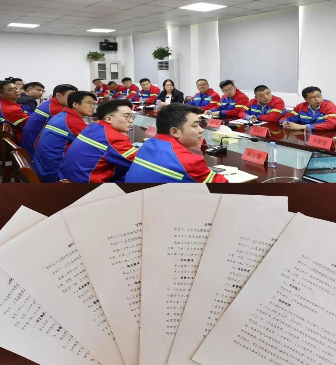響水港區(qū)與港機公司進行商談、簽訂年度維保合同