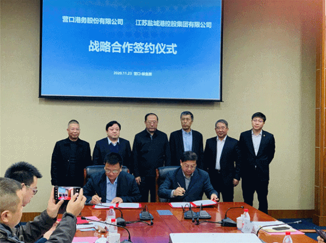 11月23-24日,集團黨委書記、董事長、總經理周正雄一行相繼拜訪營口港務集團、大連港集團以及遼寧港口集團,并與營口港、大連港、上海郁州海運簽訂戰略合作協議,開通了鹽城港至營口港的集裝箱班輪航線。