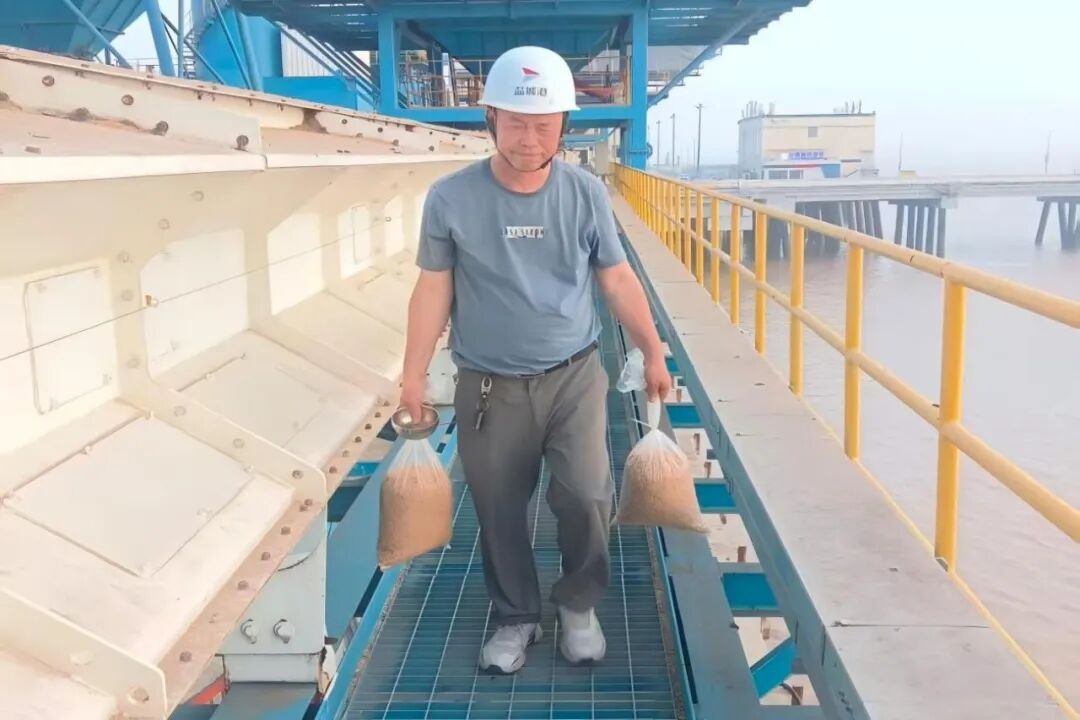 70后的顧西錦,日常主要全力配合貨代外勤推進工作,承擔關鍵輔助職責。他像一塊穩穩矗立的老基石,話不多卻句句扎實,用極致的細致與可靠,成為外勤團隊不可或缺的“堅強后盾”,將“務實精進”的精神融入每一次業務辦理中。盛夏時節,貨場地表溫度突破40℃,熱浪裹挾著大豆的豆腥味撲面而來,粗糙的豆粒在滿是汗水的掌心滾動,他的后背早已濕透得能擰出水來。即便汗水流進眼里,帶來陣陣刺痛,他也只是飛快地抹一把,生怕耽誤后續檢測時效。他常說:“咱們的工作容不得半點馬虎,就是要把每一件小事做細、做扎實,精進就是把每一次遇到的問題,都變成提升自己、改進工作的機會。”正是這份細致與堅持,讓團隊協作更加順暢高效,也讓“務實”的基因在工作中代代傳遞。