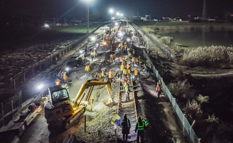 施工現(xiàn)場,撥接組、橫移組、拆除組三組聯(lián)動,精準(zhǔn)推進(jìn)軌道連接、線路調(diào)整與清理收尾,高效開展道岔預(yù)鋪作業(yè)。新長工務(wù)段副段長張同軍表示:“大豐西站改造工程自11月啟動,現(xiàn)已進(jìn)入營業(yè)線施工關(guān)鍵階段。我們投入了百余名工人和數(shù)十臺設(shè)備,預(yù)計12月底完工?!?/span>