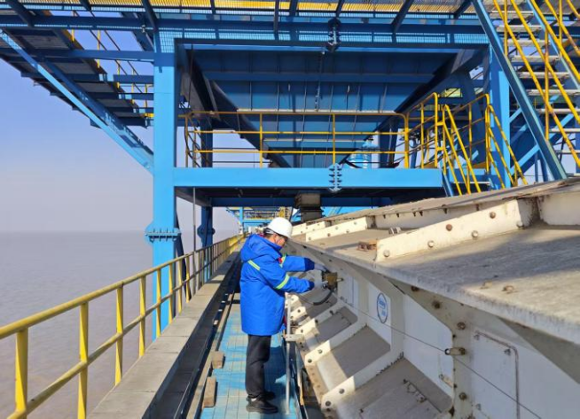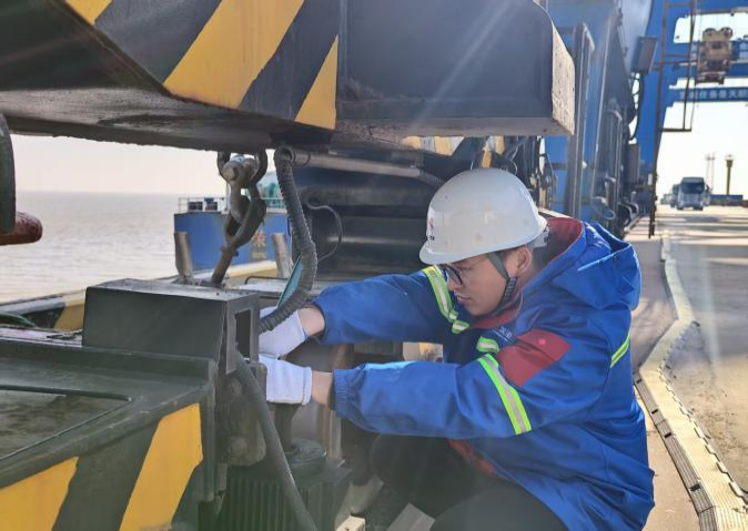 寒冬的晨霧還未散盡,陳濤正俯身蜷縮在狹小空間里,滿手油污的指尖精準對接著老化油管,他的額角滲著細汗,眼神卻專注如尺,每一次扳手轉(zhuǎn)動都力道均勻,仿佛在完成一場精密的外科手術(shù)。“這臺設(shè)備承擔(dān)著糧食轉(zhuǎn)運的關(guān)鍵任務(wù),油管老化漏一滴油,都可能耽誤整船貨的周轉(zhuǎn)。”他頭也不抬地說著,手邊的工具包敞開著,扳手、螺絲刀的金屬表面泛著溫潤光澤,那是十年如一日的打磨,刻下的不僅是使用痕跡,更是與鋼鐵的默契。在碼頭上,陳濤是公認的設(shè)備醫(yī)生,大到正面吊機的液壓系統(tǒng),小到輸送設(shè)備的一顆螺帽,他都了如指掌。今年汛期,一臺門機突然卡殼,若不及時修復(fù),整船糧食可能受潮變質(zhì)。陳濤帶著班組連續(xù)奮戰(zhàn)3小時,跪在泥濘里排查線路、更換零件,直到設(shè)備重新運轉(zhuǎn)。