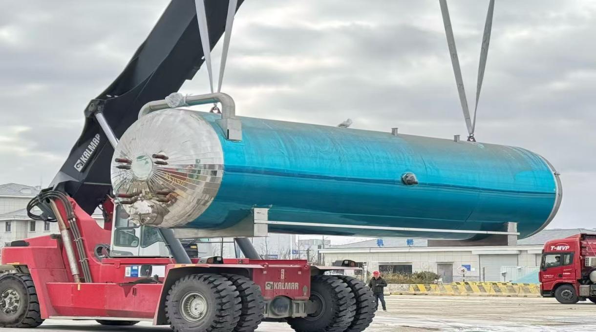 ?本次作業(yè)的貨物為8件大型咖啡凍干生產(chǎn)設(shè)備,單件重達(dá)15噸、長(zhǎng)達(dá)12米,不僅體積龐大、價(jià)值高昂,更對(duì)裝卸過程中的平穩(wěn)性與防護(hù)性提出了嚴(yán)苛要求。為確保這類“高精尖”設(shè)備安全“落戶”,亭湖港區(qū)作業(yè)團(tuán)隊(duì)延續(xù)了此前處理光伏板時(shí)的“繡花式”服務(wù)理念,量身定制全流程保障方案。作業(yè)前開展針對(duì)性培訓(xùn)與模擬推演;作業(yè)中精準(zhǔn)調(diào)度重型吊裝設(shè)備,全程嚴(yán)格執(zhí)行標(biāo)準(zhǔn)化流程;作業(yè)后對(duì)全部貨物進(jìn)行專業(yè)油布包扎防護(hù),實(shí)現(xiàn)了安全“零事故”、貨物“零損傷” 的作業(yè)目標(biāo)。