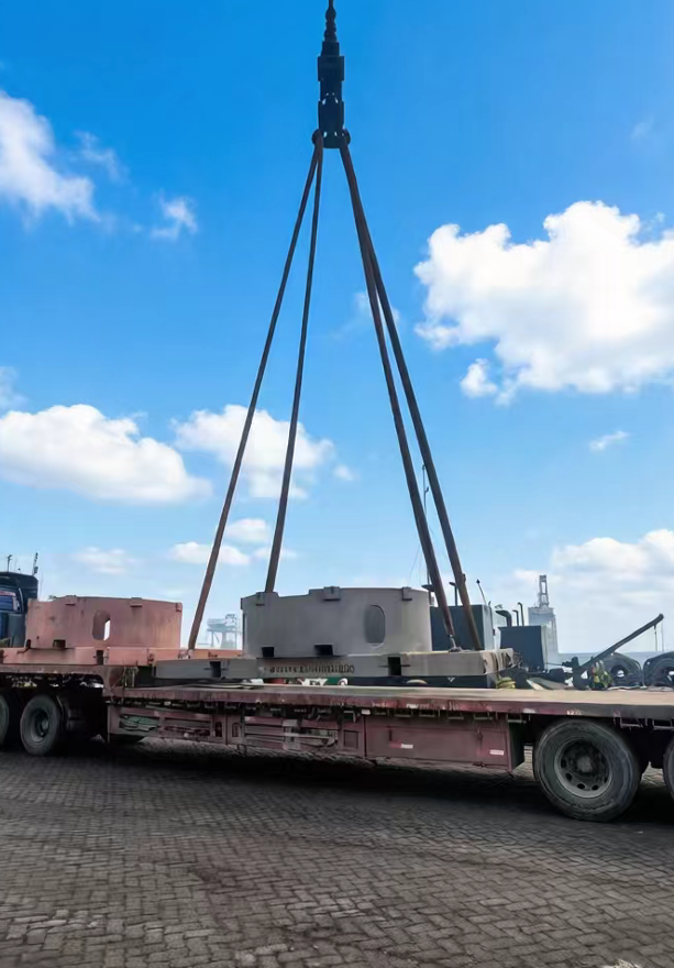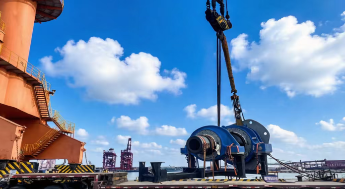 此次新貨種順利作業(yè),是濱海港區(qū)深耕市場(chǎng)、精準(zhǔn)對(duì)接山東港等重點(diǎn)企業(yè)產(chǎn)業(yè)需求的重要突破。該批新貨種涵蓋3件30噸軸系、2件14噸吊具、2件2.5噸底座及20噸散件,均為風(fēng)電葉片配套核心部件。為保障首單新貨種作業(yè)順利推進(jìn),濱海港區(qū)提前謀劃、周密部署,專門組建專項(xiàng)工作小組,深入調(diào)研貨種特性、裝卸標(biāo)準(zhǔn)及運(yùn)輸要求,主動(dòng)聯(lián)動(dòng)海關(guān)、海事等口岸單位,優(yōu)化通關(guān)、靠泊全流程,全力實(shí)現(xiàn)“即到即靠、即靠即卸”,為高效作業(yè)筑牢基礎(chǔ)。