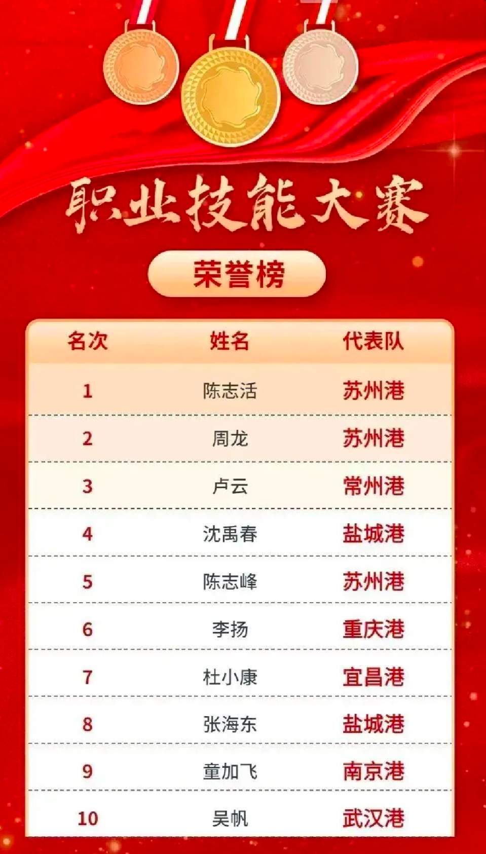 4月28日,鹽城港集團獲邀參加首屆長江港口門式起重機集裝箱岸邊吊(橋吊)操作工職業(yè)技能競賽,此次競賽鹽城港代表隊在四川、重慶、湖南、湖北、江西、江蘇等長江沿線6省市12支港口代表隊中脫穎而出,榮獲團體一等獎,沈禹春、張海東同志榮獲優(yōu)秀個人獎。